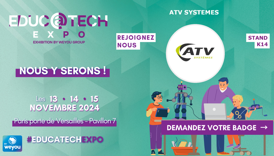 Nous serons présent sur Educatech Expo les 13, 14 & 15 novembre prochains à Paris porte de Versailles - Pavillon 7 Stand K14.