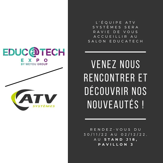 ATV Systèmes a le plaisir de vous annoncer notre participation au salon Educ@tech Expo.